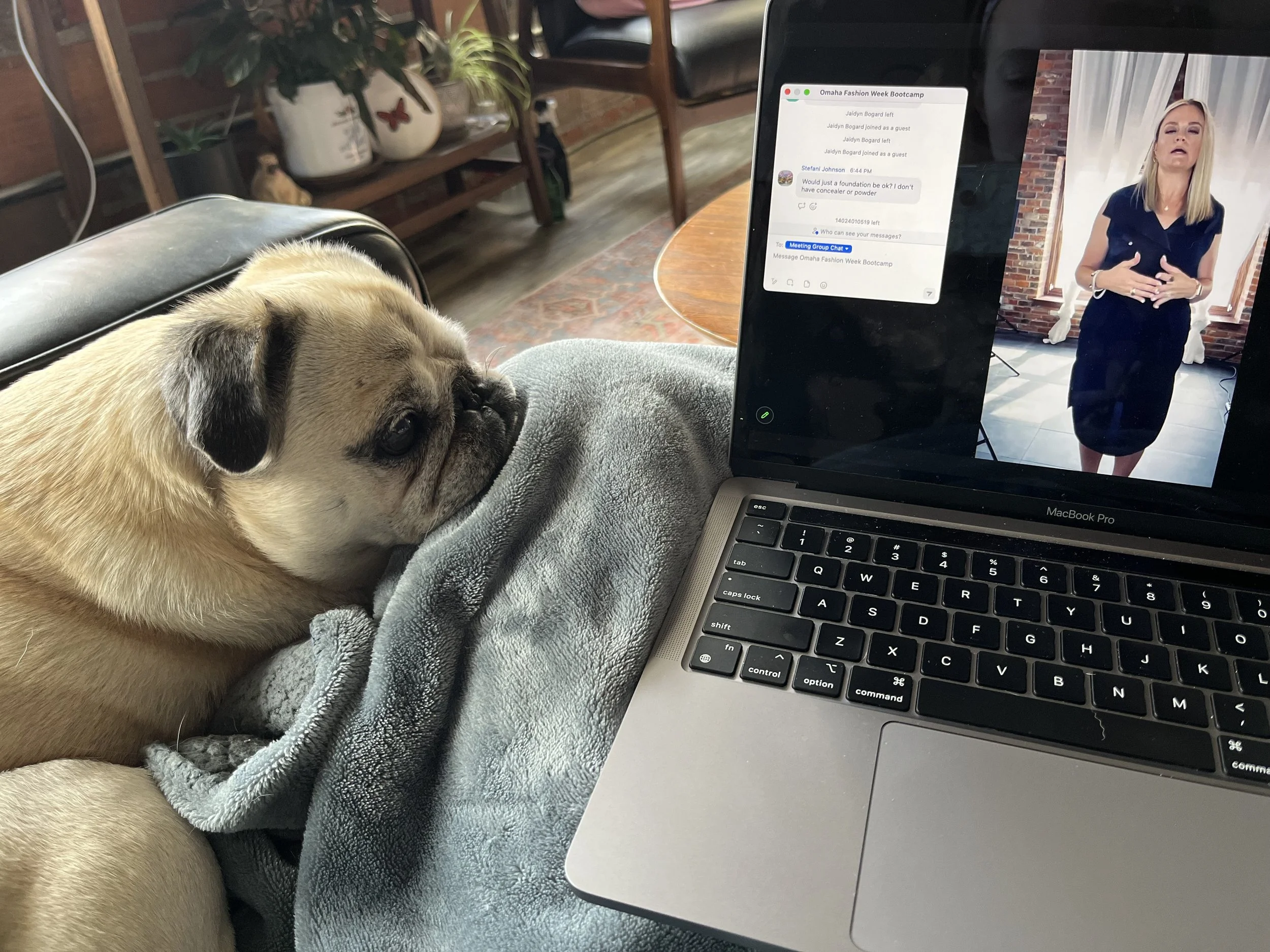 One of the nice things about Omaha Fashion Week is that they offer a “Model Boot Camp” prior to the shows for all of the cast models to attend via Zoom. During the call they went over what the timeline for each night was (each night is more or less the same), the hair and makeup process, as well as rules to follow backstage. Each model is also given the chance to practice their walk with Develop’s casting director. Some models stayed to practice, while some signed off.